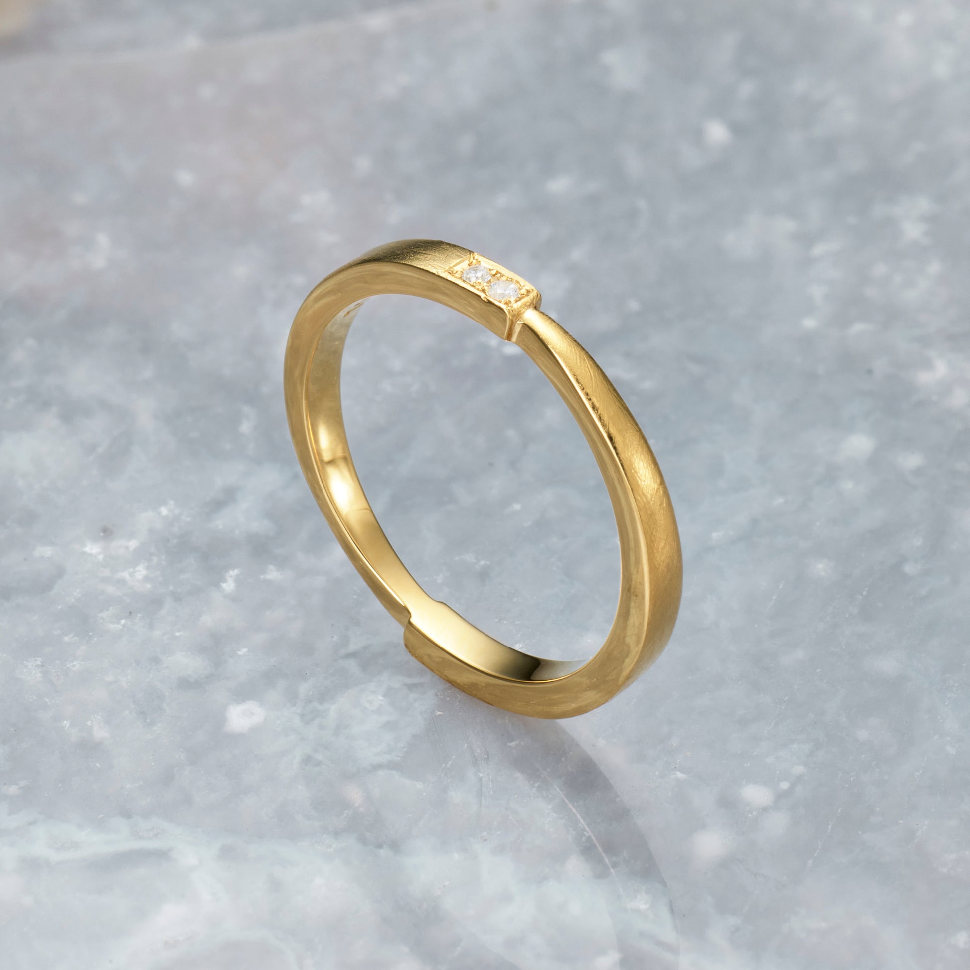 Half of the ring features a rounded dome style, while the other half is finished with a flat square style. This design completes two silhouettes and creates a meaningful, distinctive appearance. The metal's surface has an antique finish, with intentional scratches to give it a well-worn, comfortable feel on the hand.Additionally, the use of two diamonds can add a touch of elegance to your outfit.
