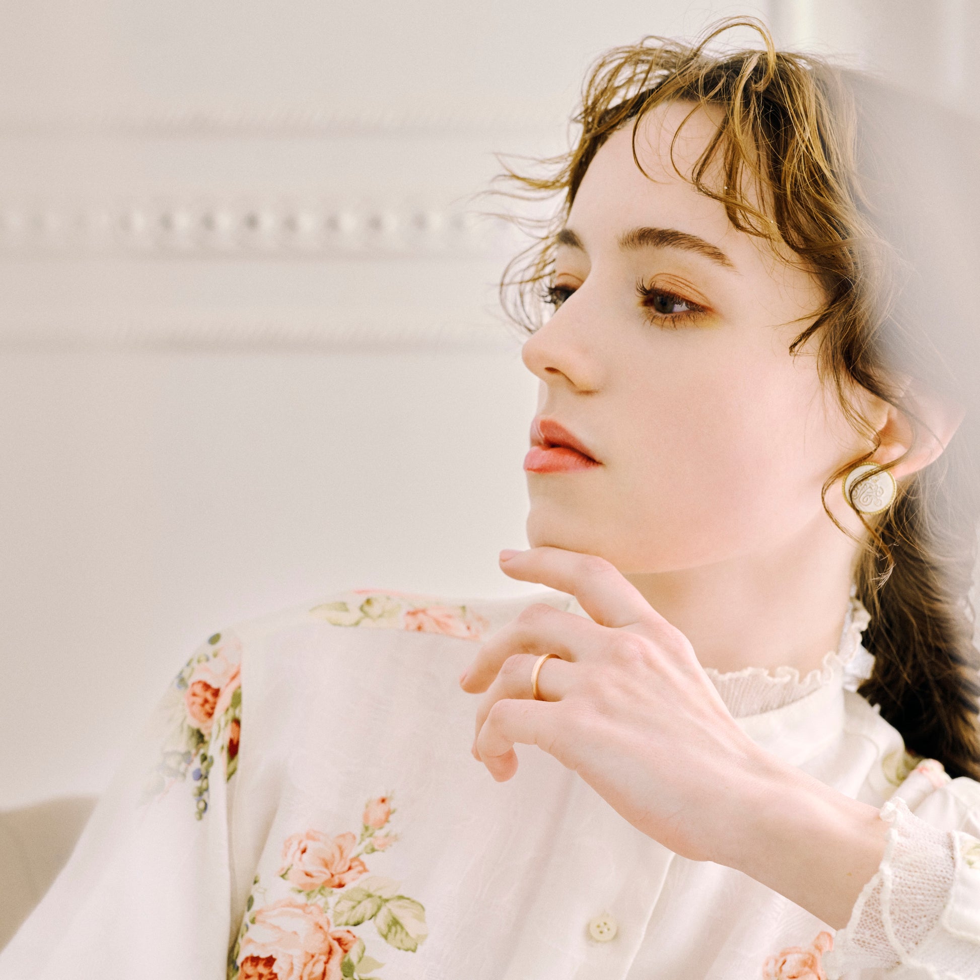 This design gradually changes from a square shape to a round shape. It's subtly unique, allowing for different expressions depending on how it is worn.
