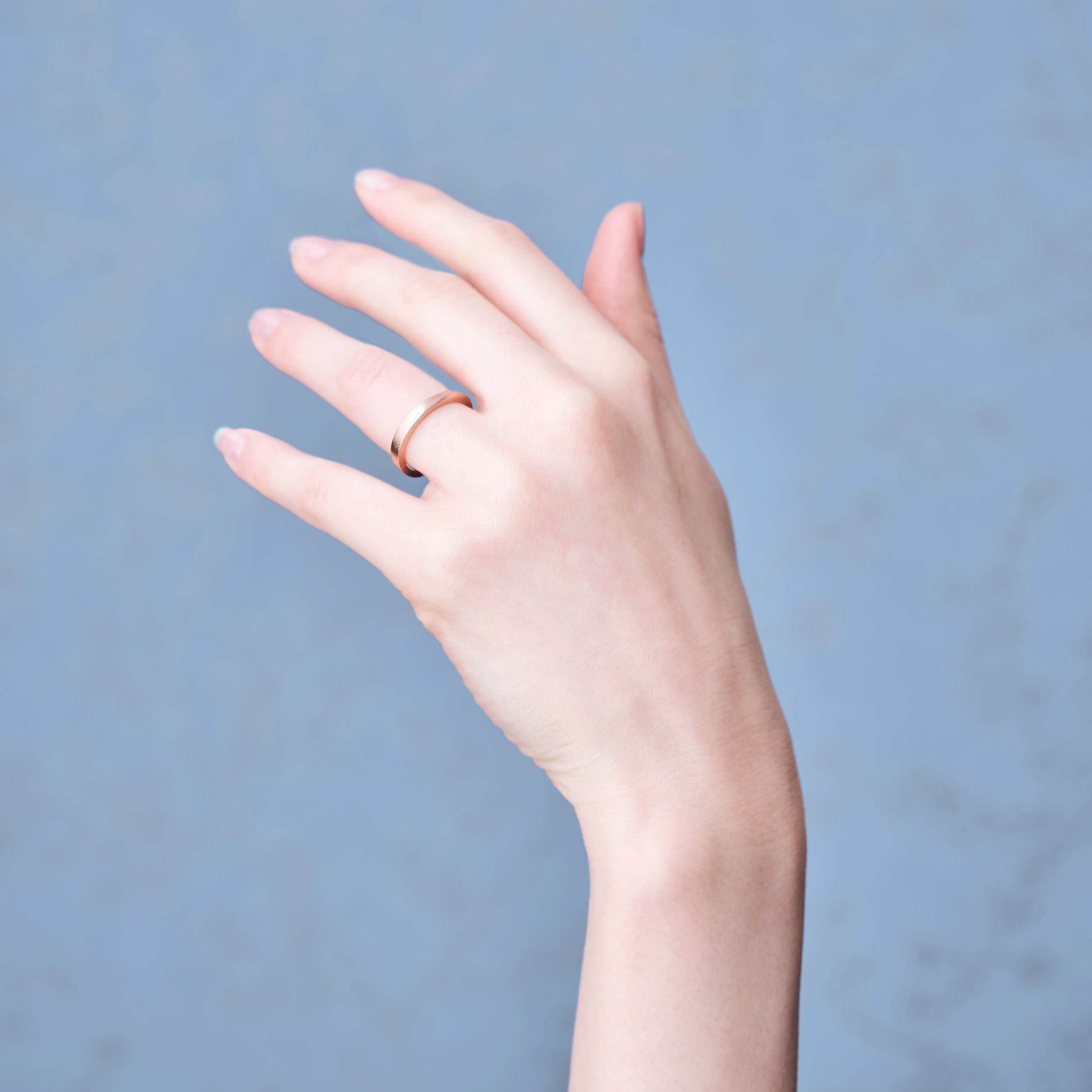 リングの着ける向きでも印象が頃なる、シンプルながらも遊び心のあるデザインに仕上げました。